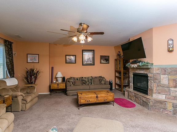 - Interior Features: Ceiling Fan(s), Eat-in Kitchen, Fireplace-Gas, Live on One Level, Master On Main, Raised Ceilings 9+ft, Smoke Detector(s), Walk-In Closet(s), Kit/Din Combo, Counters-Tile, Garage Door Opener(s)