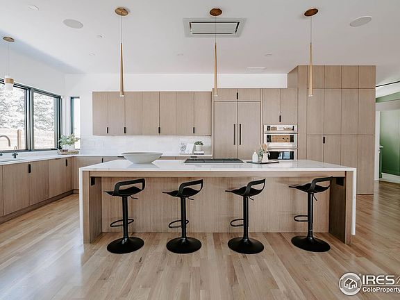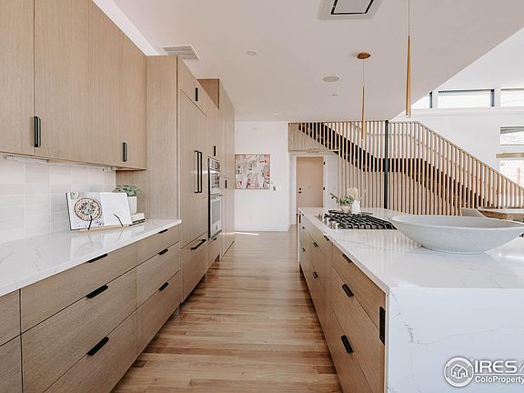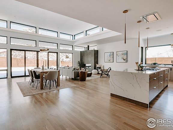 Newly constructed Net-Zero home, situated on a large lot, on a quiet Table Mesa street, with breathtaking views of Bear Peak, Green Mountain and the Flatirons. Designed by architect Mark Ford and built by home designer Bronwyn Fargo, this unique offering thoughtfully incorporates several uncommon custom-designed features, capturing both a clean, minimalist vibe and a warm, cozy, luxurious aesthetic - a rare feat that results in a distinct feeling of being uplifted in one's surroundings. The balance is palpable. The spaces, both interior and exterior, have been curated to make it easy to live your dream lifestyle in a home that is both beautiful and sophisticated, yet easy to manage. Entering through the generous 4 1/2 -foot wide Walnut pivot door you'll experience natural light as an impactful aspect in the interior spaces. The clerestory throughout the home allows objects in the home to become sculptural elements and light to be borrowed from different rooms. Generously sized spaces are warmed with beautiful wood floors, cabinetry, a slat wall stairwell and tastefully chosen brass accents, with custom cove lighting in the living room and LED channel lighting providing uninterrupted wash of light. A Brilliant smart home system allows integration of multiple systems and remote control at your fingertips, while a 19.2 kW PV system provides a huge source of renewable energy for electric heating/cooling. In the kitchen, smart appliances make living and entertaining easy, while a hidden pantry with custom wallpaper adds personality by turning the typical white pantry on its head. The primary bedroom has a spa-like bath with in-floor heat, custom walk-in closet, and 2nd story deck with stunning mountain views. This is a home thoughtfully and intentionally designed to make it easy to create cherished memories and a life that is everything you imagine it could be, walking distance to Boulder's best hiking trails, schools and popular local shops and restaurants.