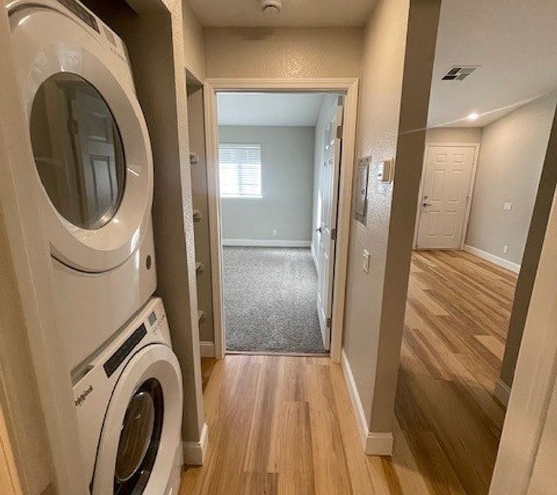 You'll love cooking in your state-of-the-art kitchen, featuring stainless steel appliances, including a commercial gas stove, large built-in microwave, stainless steel refrigerator/freezer, and a beautiful farmhouse sink. The kitchen also offers ample storage with impressive granite countertops and stylish cabinetry. As you make your way to the bathroom, you'll be delighted by the deep soaking tub, perfect for relaxing bubble baths. The front-loading, full-size washer and dryer are conveniently located in the hallway, making laundry a breeze.