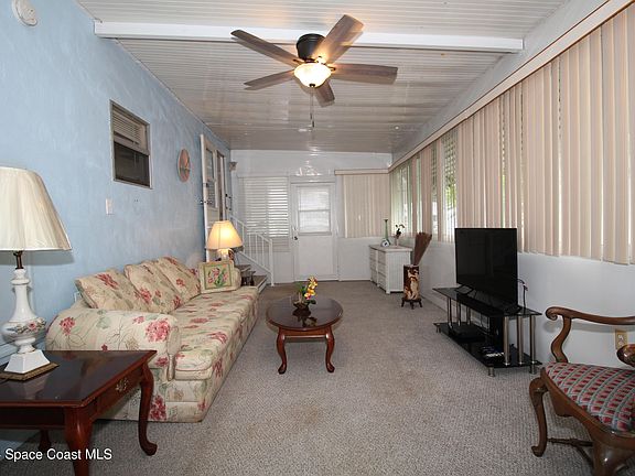 This lovely, manufactured home in Holiday Park 55+ community is available for immediate occupancy. The community offers Resort Style amenities including 2 pools, a recreation hall with professionally appointed kitchen, library, computer room, card room activity room, shuffleboard courts, bocce ball courts and optional daily activities organized by full time, onsite management. Security is maintained by 24-hour manned guard gate at the community entrance. The low community fee is paid annualy via non-ad valorem taxes. The home is partially furnished. What you see is what you get, including a 2nd refrigerator, upright freezer, stocked kitchen and more. Everything at the home stays. Huge utility room allows plenty of storage. It is centrally located in the heart of Palm Bay, close to shopping, restaurants and entertainment. Only 8 miles to the Beach. Come see it before you miss out!
