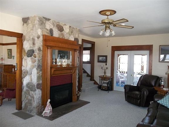 Beautiful two-story home (with elevator) on two acres. There is a two-car garage, barn, and outbuildings as well. Lots of character and charm - Window seats with storage and built-ins. Full bath with claw foot tub upstairs and a 3/4 bath on the main level. Three seasons room complete with hot tub. New Pella thermal pane windows with screens. Newer furnace and central air. Full Basement. New roof on house (2012) and on garage (2013). Wide hallway, 36 inch wide doors, and an elevator make it easy to get around this lovely home. Lots of storage in insulated walk-up attic.