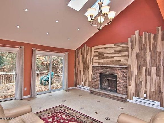 Golf Front! This property backs up to Hole #18 of Pocono Farms Country Club. Looking for a home with taxes below $2, 400yr? Look no further! This 3BD +loft 2BA contemporary home on a half acre lot has been completely remodeled from top to bottom! New Windows, Vaulted ceilings, Open Layout, recessed lighting, Brick-Faced wood-burning fireplace, granite counters, beautiful custom tile throughout the main level, fully tiled and entirely updated bathrooms, large back deck, paved driveway and much more. All of this located in the Pocono Farms Country Club Community with so much to offer (Olympic Sized Outdoor Pool, Tennis and Basketball Courts, Lake, Clubhouse with Restaurant, Fitness Center, Golf Course, Trash Pickup Included, Playgrounds and more)!