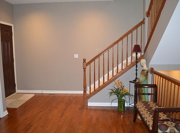 GORGEOUS TOWNHOME featuring 3 bedrooms & 2.1 bathrooms. Discover a beautiful & sleek open floor plan that is MODEL PERFECT! Spacious foyer! Exquisite kitchen with STAINLESS STEEL APPLIANCES, hardwood floors & abundant cabinetry. Breakfast bar & dining area adjoin the kitchen! Elegant DR w/ beautiful HARDWOOD FLOORS! Grand FR featuring a vaulted ceiling, hardwood floors, fireplace & skylights allowing an abundance of natural light. Master suite is your own private oasis with VAULTED CEILING, ultra luxurious master bath & huge walk in closet. Additional bedrooms & hall bath complete the 2nd floor. Convenient 1st floor laundry room! Expansive, full bsmt w/ rough in! Very PRIVATE, concrete patio backing to a mature tree line ... privacy and peaceful views abound! 2 car garage with epoxy floors. METICULOUSLY cared for and located on a quiet street. This is the one for you!