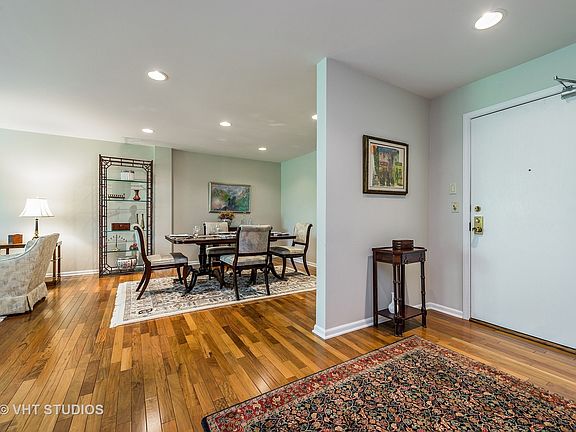 Shows like brand new! Tastefully redone 2 bedroom /2 bath condo. Warm & inviting foyer, spacious & gracious Living + Dining Room(s) custom walnut hardwood floors throughout. Chef kitchen & eat-in breakfast room features new cabinets, matching paneled Sub-Zero refrigerator, granite countertops & back-splash, stainless steel double oven & dishwasher + sliders to a wonderful, large balcony. Large Master bedroom w/bonus office/sitting room & 2 walk-in closets, newer carpet & a private bath w/a custom updated vanity. 2nd bedroom doubles as a den/family room & is open to the kitchen w/french doors for privacy. 2nd bathroom also features an updated vanity. In unit laundry/utility room w/side by side washer/dryer. Great floor plan, flooded w/natural light, renewed w/classic sophistication. Indoor heated parking & storage+abundant outdoor guest parking. Building has a party room, an exercise room w/library, newly remodeled lobby & elevator. Conveniently located, move in ready!
