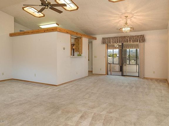 One Owner Home, never been on the market, situated at the end of a quiet cul-de-sac. 3 car garage, 220 outlet, large concrete driveway/pad, plus graveled driveway that wraps around the house, RV set-up with 30 amp service, water and dump. Fenced backyard, mature landscaping on a timed sprinkler system, plus enjoy the unobstructed Red Rock views. Skylights and large windows, keep home light and bright. Natural gas heat, refrigeration & evap cooler, ceiling fans in all rooms and a gas fireplace. Ideal kitchen w/lots of cabinets, all appliances stay, including washer/dryer & water softener. Large laundry room w/tub, heated and cooled AZ room, bump out in the living room, plus eat-in kitchen and dining room. Master bath has a large walk-in shower, abundant storage and handicap features