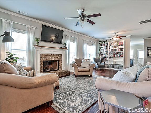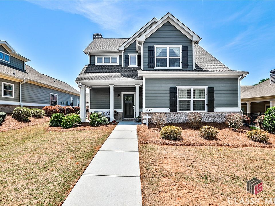 Two story charming cottage in Grove Park, a perfectly located community less than a mile to Oconee High School and Veterans Park. The living room is open to the dining area and has a brick surround fireplace. Beyond the living room is a very functional kitchen with granite counter tops, stainless appliances, breakfast bar and large pantry. The laundry room is central to the living spaces and has a sink and storage. A rare find is the primary bedroom and an additional bedroom and full bathroom on the main level! The master suite has a large walk-in coset, double vanity, separate tub and shower and water closet. Upstairs is a loft connecting 2 LARGE bedrooms and both are ensuite. Oversized walk-in closets and immense storage. The covered back porch is a great place to relax or grill out and back yard has a privacy fence. Lawn care is included in the HOA and the community has a playground and swimming pool.
