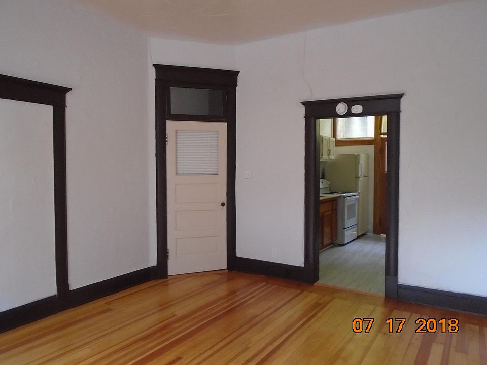 Original wood floors. High ceiling studio across from public library above retail stores. Owner pays water, sewer, trash, heat.