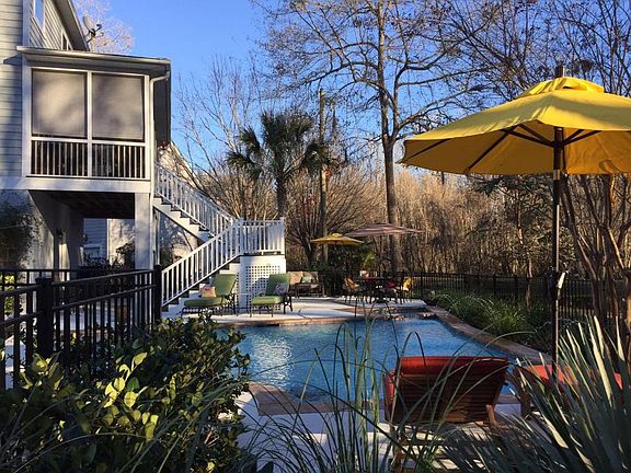 BEAUTIFUL custom built home with spectacular showcase in-ground saltwater pool including 4 bedrooms, 2 full baths, 2 half baths and over 3000 sqft living area. This gorgeious and immaculate home shows like a model! Elevated construction, a grand entry, handsome hardwood floors, plantation shutters, an abundance of natural light and loads of storage. The oversized great room has a gas fireplace, built-in shelves, and two sets of double French doors leading onto the large screened-in porch that overlooks the resort style saltwater pool and pond. The home boasts an open gourmet kitchen and includes an island, custom built cabinets, and granite countertops. The kitchen is a chef's delight that is perfect for entertaining! There is a separate flex room/dining room with wainscoting