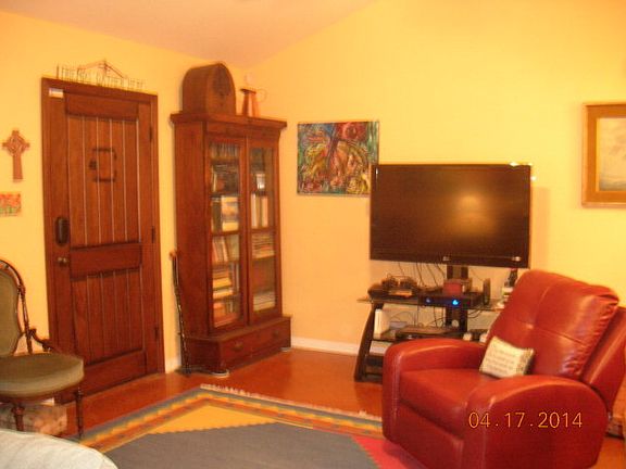 WELL MAINTAINED HOUSE WITH TWO LOTS. SECOND LOT COULD BE SOLD OR BUILT ON. COMES WITH LARGE (28 X 18) AC WORKSHOP WITH SLIDING DOOR AND RAMP. SECOND OUTDOOR BUILDING: LOG CABIN TYPE(10 X 10) USED AS AN OFFICE OR COULD SERVE AS A CUTE GUEST BEDROOM. THERE IS AN OFFICE SPACE/3 SLEEPING AREA IN MAIN HOUSE.COMES WITH 8 LOW BAR CHAIRS THAT SERVES AS MAIN EATING AREA BETWEEN KITCHEN AND LIVING ROOM.OWNERS OFFERING ALL WINDOW DRAPES AND TWO LG AREA RUGS WILL REMAIN PLUS ALL APPLIANCES. $2000 FLOOR ALLOW.TO REPAINT FLOORS. BEDROOMS HAVE CARPET. COME ENJOY THE THREE SIDED COVERED PORCH (119.86 SQ. FT.)