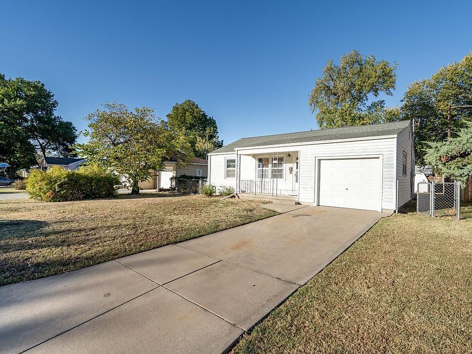 Cute, cute, cute! 2 Bed 1 Bath, move-in ready. Fresh interior paint, and carpet. The Bathroom has been remodeled with great finishes. New Heat/Air, Water Heater, Electrical Service. Eat-in Kitchen, all appliances stay. Washer/Dryer also stays with home. One car attached garage. Storage Shed. Fenced Yard. What a great 1st home.