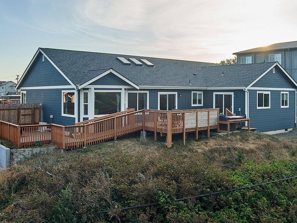 Gorgeous, solid, newly constructed home that checks all the boxes. Single level living, large bedrooms, spacious bathrooms, and expansive, open concept, floor plan fit for hosting. Master Suite with over-sized closet, en suite soaker tub, and views of the bay from your bed. Large windows, vaulted ceilings and skylights provide ample natural light. Sliding glass doors off dining area to the dual-level Trex deck; fit for summer BBQs and relaxing in jacuzzi. Cozy living room with gas fireplace and views of the boats on Yaquina Bay. Attached two car garage and ample RV parking for yourself or guests. Centrally located with walkability to all your coastal adventures. Only two block's walk to Bayfront and six blocks to Historic Nye Beach and sand between your toes!