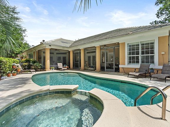 This delightful single story custom home has 3 beds, 2.5 baths, and an office that could easily be used as a 4th bedroom. Entering through the beautiful double doors, you'll be greeted by an open-concept layout including a formal dining room, perfect for hosting gatherings. The spacious master bedroom includes seating area and French doors accessing the lanai and private pool. The master bath includes a beautifully tiled soaking tub, separate shower, double vanities and a dressing area. On the opposite side of the home are two additional bedrooms. The bright kitchen has stainless steel appliances and a breakfast bar. It flows into the family room which features built in cabinetry, a gas fireplace and a lovely chandelier. Plantation shutters cover windows and doors. Head out through any of the various double doors to the screened lanai for a swim in the saltwater pool. Mature landscape allows for privacy while enjoying summer fun. Oversized side entry garage allows for plenty of room for your cars and golf cart. This home is located within walking distance to the Raven Golf Course and Baytowne Golf Course. Sandestin Golf and Beach Resort features more than seven miles of beaches and pristine bay front, four championship golf courses, 15 world-class tennis courts, a 226-slip marina, a fitness center, spa and celebrity chef dining. Shop, dine and play at the charming pedestrian village, The Village of Baytowne Wharf and more. Inside the gates of the resort, residents enjoy a balanced lifestyle of high-class living, spanning the 2,400 acres from the beach to the bay. Everything within the gates of the resort is accessible by golf cart or bicycle. The entire resort is interconnected by miles of pedestrian, bike and golf cart paths that weave through groves of live oaks, meandering past natural lagoons, fountains, man-made lakes, and meticulously landscaped fairways.