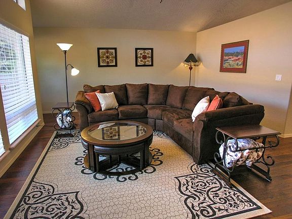 This beautiful vacation rental property is a spacious ranch style property with 3 bedrooms, 2 baths, 2 car garage on a large half acre lot in Sedona’s quiet Village of Oak Creek. Beautiful Cathedral Rock formation views from the front of the house. Only one mile from Oak Creek Country Club golf course and near two other golf courses (Sedona Golf Resort and Canyon Mesa Country Club) with nearby shopping. An excellent living area with plenty of outdoor hiking and biking activities near the many rock formations, such as Bell Rock and Courthouse Butte, in beautiful Sedona Arizona while enjoying the Summer temperatures from the warmer Southern States, including Phoenix and Palm Springs locals, or the Winter temperatures from the colder Northern States, including Flagstaff & Denver locals. House is fully furnished with fully equipped amenities. Rent includes all utilities (Electricity, Natural Gas, Water, Sewage, Trash, Dish TV, and Internet).