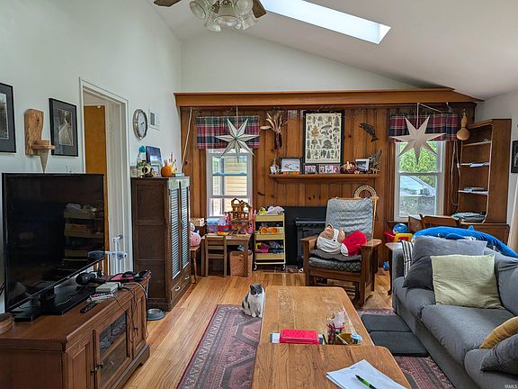 Conveniently located near everything Purdue, this charming corner-lot home is ready for you to move in! The fully fenced backyard offers privacy and space to relax or entertain. Inside, you'll find beautiful hardwood floors throughout this 2-bedroom, 1-bath home. Enjoy the spacious living room, complete with vaulted ceilings, skylights, and a cozy wood-burning stove—perfect for both comfort and style. The kitchen features sleek granite countertops, adding a touch of elegance and functionality. The full, unfinished basement provides abundant storage and potential for additional living space. Be sure to review the comment sheet for a complete list of updates and upgrades—this home is truly move-in ready!