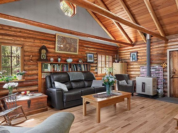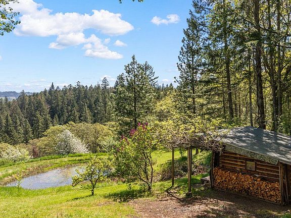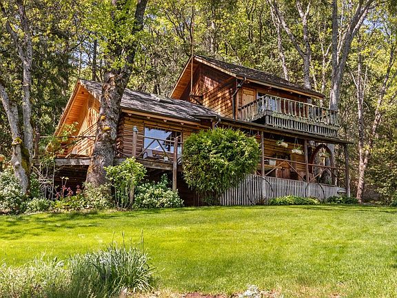 Nestled just 30 minutes from downtown Medford, Oakstar Homestead is a serene retreat at the end of the road. Set on approx. 100 acres with three tax lots, it boasts a beautiful main residence, three cozy cabins, and a bunkhouse. Surrounded by open meadows, woodlands, and six ponds, the property is a haven for wildlife. The main house features 2 beds/2 bath, stunning views, and quality craftsmanship. The spacious master suite includes custom flooring, while downstairs offers an open living area, custom kitchen, office, and half bath. Outside, a wrap-around deck, sauna, and plunge pool await. The cabins and bunkhouse provide private accommodations for guests or rental income. Off-grid living is made sustainable with hydro and solar power. Don't miss this rare opportunity—with owner carry options.