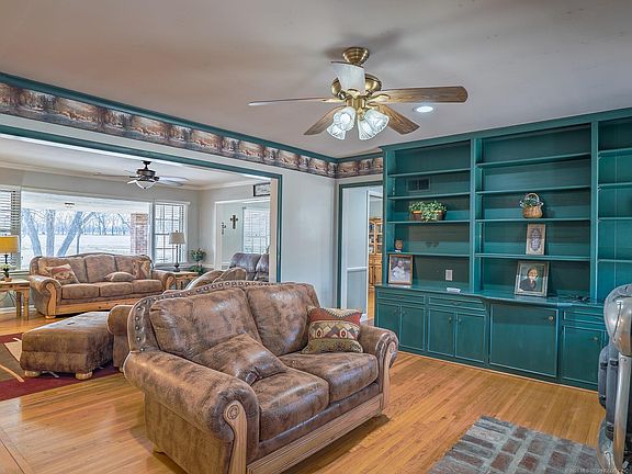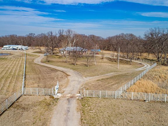 HOME & BUSINESS OPPORTUNITY!! a 3 bedroom 2.5 bath recently remodeled approx. 2546 sq ft home setting on 34 acres m/l along w/Dbl WIDE mobile home. shop/stables w/ runs, additional 2 bedroom 2 bath home/ office pipe fencing. lofting shed, all new 100'x 300' riding arena, pond 25 miles south of Tulsa. Features: Home, large barn w/storage, pond, hay barn, loafing shed & too many other features to list.you can open your own business . home sets to the back of the property nestled in a park like setting.