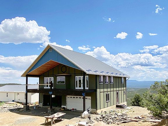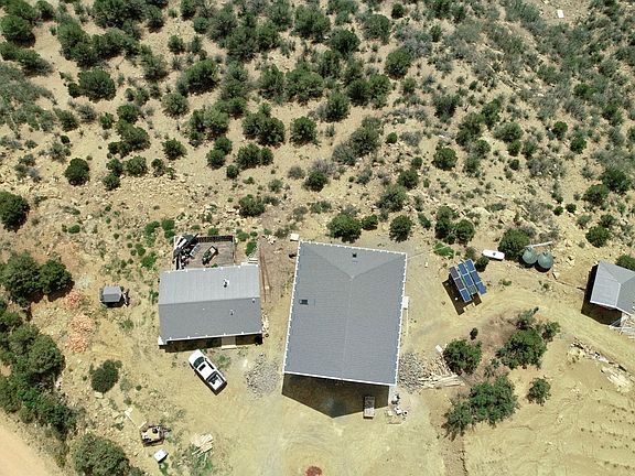 The Owner says ''get it done''! He will OWNER CARRY~ with a $100,000 down payment, owner will carry a 5 year mortgage, giving you time to finish the home and get a conventional or VA mortgage, or sell it. This off grid 2,345 sq ft home is under construction and ready for your finishing touch. Hardy board siding, Pella windows, metal roof, much more. The sale also includes a 2001 manufactured 3 Bedroom/2 Bath 1,354 sq ft home that you can live in while finishing the main house. The main home is dried in, & has a huge 4 car garage. The solar panels feed 6 giant battery banks, which easily keep power to both houses year round, and a 220 work shop. 8,000 gallons of fresh water is stored in cisterns. Check out the photos... you can see forever, excellent hunting on your property.