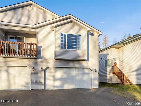 Highly sought after Birch Knoll Condo with lots of sun exposure and open floor plan. Tastefully updated and lives large with vaulted ceilings, master w/ walk in closet, gas fireplace, top floor deck, and private green space backyard. Flex space downstairs can be bedroom or family room. Convenient S Anchorage location, close to walking trails, restaurants, and shopping.