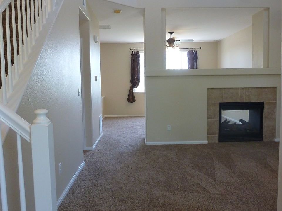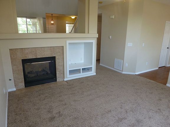 Back on the market! Two story ceiling in the open front living room with double sided gas fireplace shared with the adjacent family. Large eat-in kitchen features a stainless steel appliance package, hard wood floors and tile countertops. Spacious upstairs, bonus loft for a third living area makes the floor plan comfortably livable for the family with children. Plenty of natural light throughout the home. Private master suite has an open 4-piece bath with oversized soaking tub and walk-in closet. Second and third bedrooms are both good sized, one with walk-in closet. The home has new carpet and paint throughout. You'll love the extra large lot on end of a cul-de-sac, that backs to open space and walking trails. You don't see another neighbor from the covered deck in the back yard! Lots of natural light, open and functional floor plan, great lot with views, private back yard, ready for immediate move in, blocks from community park, quick access to I-76 and E-470. It's perfect, so hurry!