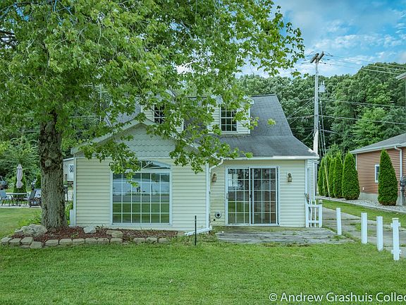Private Gun Lake Frontage!! This Current 1 bedroom 2 full bath home has an unfinished upstairs that would offer up 2 more bedrooms and another full or half bath if someone would want it, 50 FEET of Private frontage await you with prime sandy beach, this cottage offers you views of East Gun, the island and deeper water for summer and winter fun alike! main floor has family room facing the water with Dining area and Kitchen with views, a main floor master with master suite, detached 1.5 stall garage for storage or parking, with some sweat equity this cottage could be a life long family retreat! call us today to view.