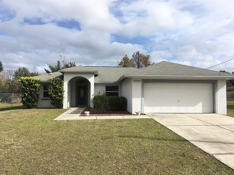 Very nice 3/2/2 home conveniently located between The Villages & Ocala in a quiet neighborhood. Home features a spacious Kitchen with an open living room/dining room combination with vaulted ceilings. Split bedroom with a large master bathroom and walk in closet. Master bathroom has a large double sink vanity and walk in shower. A second bedroom has a custom closet organizer Back yard has chain link fence with a playhouse, perfect for children and pets. Home Warranty Plan