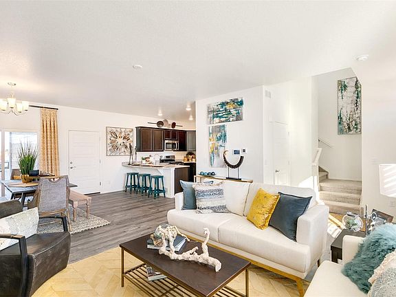 Covered front patio w/dry-stack stone exterior, 9' ceilings on main level, Transom window at front entry, full unfinished basement. Kitchen includes eat in breakfast bar (expansive counter/cabinet space), pantry, gas stainless steel appliances, slab granite counters w/undermount sink & chrome pull out faucet, White cabinets w/crown molding, and beautiful luxury vinyl plank on the entire main level. Tankless waterheater, Home is Connected package, Lever door handles, LED lighting, garage door opener, & window coverings. Front & backyard landscaping w/irrigation & rain gauge. Backyard fence included. This home has no wasted space and is designed for complete livability. 8 Acre LC community park, close to the Pace Center, Mainstreet Parker (shops/restaurants), Library, Parker Ice Trail at Discovery Park, dog park, and disc golf course. Easy access to I-25/C470, park and ride, and the RTD Light Rail. Builder Warranty. Photos are representative-not of actual home.