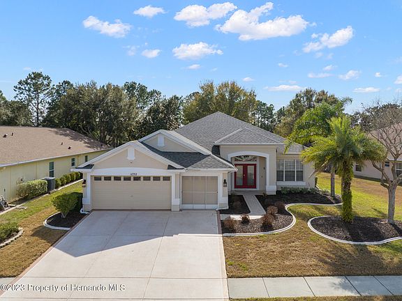 BACK ON MARKET, BUYER'S FINANCING FELL THROUGH! Welcome home to this beautifully maintained and spacious home in the desired community of Wellington at Seven Hills with NO REAR NEIGHBORS! As you enter this stunning 4/3/3 home you'll be greeted by the double entry doors. Upon entering you'll notice the very welcoming arched entryway and the high ceilings giving it that true Florida feel! This home features a tri-split floor plan and an open concept. Freshly painted interior and a NEW roof installed in 2022. The kitchen features STAINLESS STEEL appliances with double oven range, beautiful glass door cabinets with dentil crown molding, corian countertops, and decorative backsplash. The master suite features double closets with a tray ceiling and a sliding glass door out to your ENCLOSED lanai, perfect for entertaining or even just relaxing on a beautiful day! Call today to make this piece of paradise yours!