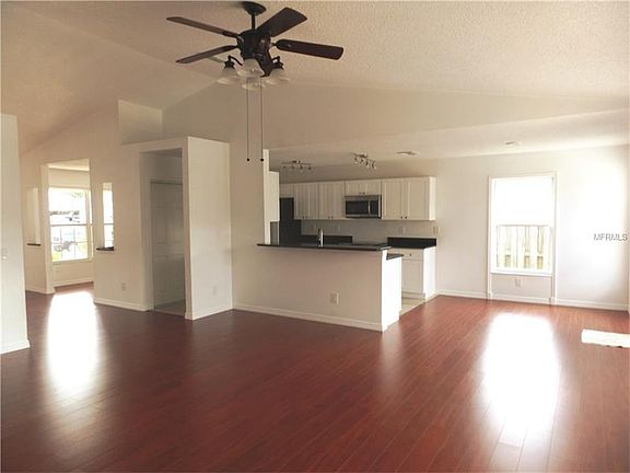 Beautiful 4 bedroom pool home with soaring cathedral ceilings. Open floor plan with lots of space including a formal living room, formal dining room and a great room. Split bedrooms and master bedroom comes with a spacious bathroom with shower , tub and walk-in closet. Spacious indoor laundry room. This home has been renovated and completely repainted inside and out. The modern kitchen has cottage cabinets, top of the line stainless steel appliances and granite counter tops. You will enjoy entertaining in your private screened pool area. The back of the home overlooks a small lake so that you may enjoy bird watching. Come enjoy that Florida dream and move in immediately--with nothing to do but relax.