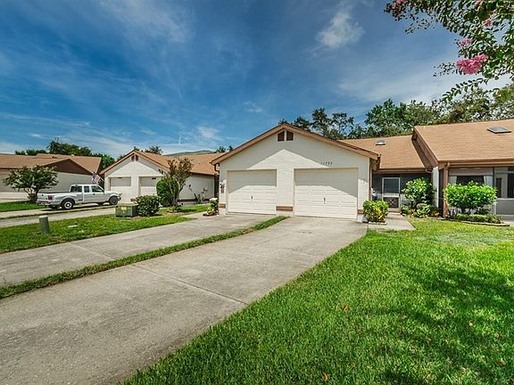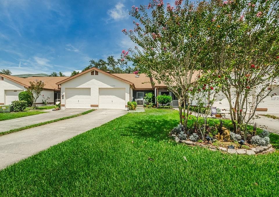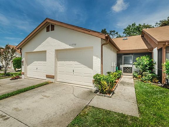 CONSERVATION VIEWS - ONE STORY VILLA WITH GARAGE - RARELY ON THE MARKET! Don't miss this 2 bedroom, 2 bath light bright open flowing floor plan with 966 square feet including a one car attached garage and no rear neighbors. Located at the end of a cul de sac on a conservation lot this well maintained home features an inviting walkway into a spacious screened in front porch with access to the garage. The front entry is highlighted with ceramic tile. The kitchen has plenty of cabinets and counter space, a closet pantry, breakfast bar including a range, dishwasher, microwave & refrigerator with easy access to the dining room along with a kitchen sink that overlooks the great room. Soaring cathedral ceilings in the great room with sliders out to the large screened in lanai. The master suite is spacious and has large walk in closet, linen closet along with sliders out to the lanai as well. Additional features of this home includes lots of natural light streaming in along with several skylights, ceiling fans, cathedral ceilings, garage door opener, laundry facilities are in the garage, washer and dryer included! Low HOA dues, $103 per month that includes the ground maintenance, exterior building maintenance, community pool, clubhouse, shuffle board and lawn pest control. Near schools, medical facilities, golf courses, restaurants, shopping, beaches and more! Won't last!