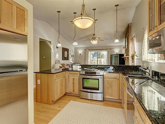 Fabulous Ranch on Cul de Sac that backs to open space! Great curb appeal with front courtyard entry. Upgrades thru out include, newer windows, hard wood floors, Newer roof furnace, AC and windows. Open concept living with vaulted ceilings, wood burning fireplace and cozy dining nook. Kitchen is remodeled with solid wood cabinets, granite counter tops and high end stainless appliances. Master bedroom with on suite bath and nice walk in shower. Two additional bedrooms and full guest bath. Laundry conveniently located right outside Master. Beautiful back patio for grilling with large yard. Garage is handy mans dream with fully finished walls, storage for tools and work space. The garage is also heated.