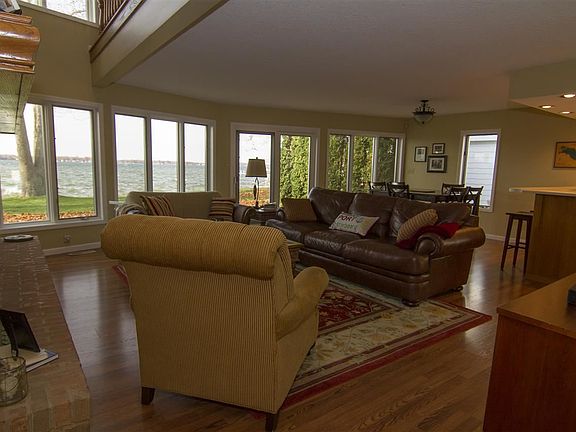 WAWASEE LAKEFRONT offers beautiful views on this highly desired shoreline of the lake. Pier 53 offers 3 bedrooms 2 baths in this nearly 2000 sq ft home. Open plan kitchen great room area with fireplace. Second level Master suite overlooking massive views of our beautiful lake. New wall of windows lakeside, 3M film lifetime guarantee. Interior freshly painted. New flooring, range & refrigerator. Great sand beach, new deck…pick your spot to watch the sunsets; sun going down on another beautiful day at the lake. Ample parking for family and friends, come start making your lake memories today.