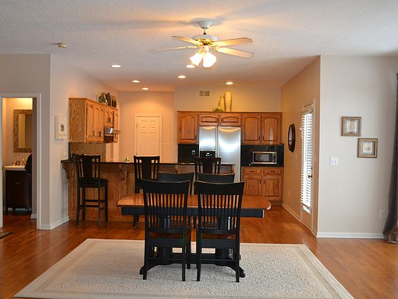 CONTRACT PENDING. ACCEPTING BACKUP OFFERS ONLY. This 4 bedroom, 2.5 bathroom home is move-in ready with all the upgrades. New carpet in 2012 and new paint throughout, beautiful hardwood floors on main level and kitchen featuring stainless steel appliances with gas range, granite countertops with undermount sink, granite backsplash, updated oak bar front, and cabinets with undermount lighting. Updated dining room features chair rail/paneling, crown molding, window treatments and chandelier. Updated vanity in downstairs half bath. Large living room includes gas fireplace, built-in shelves and wiring for surround sound. Large bedrooms and updated spare bathroom with tile floor and vanity with granite top. Amazing master suite includes den/sitting room, glass block walk-in shower, tasteful tile throughout the whole bathroom and walk-in closet. Partially finished basement with tiled living room and office/workout room separated by French doors. Unfinished portion of basement includes storage space and work-bench. New roof and exterior paint in 2009 and new landscaping in 2013. Brand new Liftmaster garage door opener. Quiet fenced-in backyard with mature shade trees and concrete patio backing to green space. Great location with easy access to I-35, I-435, and Highway 69. Minutes from Johnson County Community College, Indian Creek trail, shopping, and restaurants. ALL APPLIANCES INCLUDED. *Realtors bring your buyers. We are offering a 2% realtor commission.