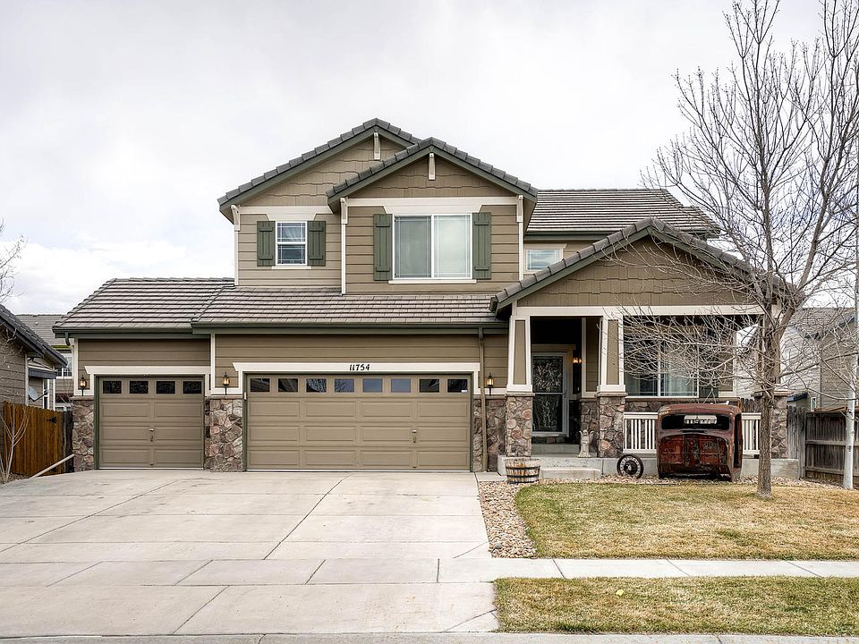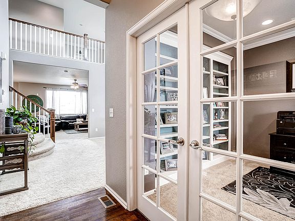 Beautiful 3bd, 3ba, two story with additional 15x10 loft space, main floor study with french doors and a 3 car garage in golf course community! Home sides to greenbelt! Spacious and light filled vaulted living room. Great flowing floor plan! Large eat-in kitchen with island and extensive hardwood floors that opens into family room which is perfect for entertaining or spending cozy evenings in front of the fireplace. Study has built-in shelves and overlooks the covered front porch. Large master suite with 5 piece bath and his/her walk-in closets! Nice laundry room on main floor with cabinets for storage. Light and bright finished basement with egressed windows, plenty of storage and rough-in for additional bathroom - pool table stays!! Nice patio space in front and back to spend time enjoying the upcoming warm summer days and evenings! This is home!!