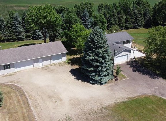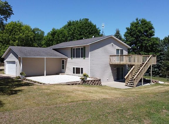 Amazing opportunity to live in a quiet part of Dakota County which boasts lower taxes compared to other counties and location is great for commuting, close to Hwy 52. Cozy downstairs with pellet fire stove gives a great feel in the winter. Mature trees surround and natural hill to the west for wind defense. Heated 30x60 detach garage with concrete for the ones who like space for projects. Well insulated. Oversized doors for those larger vehicles. The house has a basement walkout to the east to take in those sunrises. Living spaces upstairs and down. Oversized laundry room downstairs can easily be turned into a 4th bedroom. Hardwood floor on the landing and upstairs kitchen dining. Ceiling fans in all the rooms and dining. New chandelier in the entryway. Endless potential to make your own with the foundational components already having been completed. Hard to find land with mature trees in a quiet setting like this one. All with isolation from neighbors. See supplements for more info.