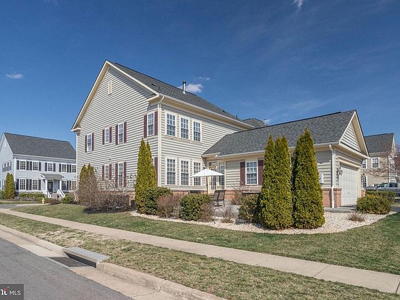 Welcoming, bright and sunny home in New Bristow Village. You will be wowed from the minute you step in the front door! Open floorplan, neutral color scheme, updated light fixtures. Convenient work from home office with glass french doors at front of home. Living/dining room with lots of windows. Kitchen has newer stainless steel appliances. Kitchen and breakfast nook are open to family room with built-ins and more windows! Main floor laundry. Upstairs has spacious hallway open to below overlooking the front door so you can peek down to see who is at the door! Spacious master bedroom with his and hers closet, large master bath with dual vanities and water closet. Three additional bedrooms and hall bath with double sinks give you room to grow. Basement has finished stairs and lower level landing with a door to full, unfinished basement with plumbing rough-in and walk up stairs to back patio. Backyard features stamped concrete patio, lovely landscaping and a partial pond view. Two car garage enters from rear alley. Corner lot. Don't miss this one!