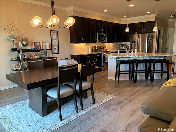 Wake up in this open concept, like new, lightly lived-in upgraded townhome with park and mountain views! The unique floor plan has 20 ft ceilings in great room, exposed 2nd floor hallway with curved metal railing overlooking the great room, Anderson patio doors off dining room to a spacious outdoor patio, a cozy gas fireplace, high-end kitchen finishes, heated primary bath floors, and much more! This floor plan does NOT come on the market very often. HOA includes Lincoln Creek Green Space and Playground (great for dogs), Walking paths, landscaping, snow removal, water, sewer, trash and exterior insurance. The spacious 2+ car garage has lots of storage and mechanical room. This community is only 25 minutes to DIA and 30 minutes from Downtown Denver. You are connected to expansive bike paths and walking distance to Downtown Parker and shopping. The main floor has Luxury Wide Plank Vinyl Flooring along with neutral paint colors, just waiting for your own style to be added. Aspen Brook Townhomes is a boutique community with just 31 units in 7 buildings, close proximity to desirable Parker Core Knowledge charter school. Additional granite in garage for future remodel of guest full bath. Like the furnishings? Everything is negotiable except for the primary bedroom furniture and couch. Do not miss this opportunity! It's a must see.