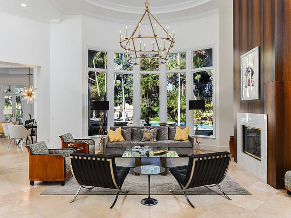 Major Price Reduction! Take advantage of an opportunity to own this stunning home located in the Grand Estates of Old Palm Golf Club. Membership is optional. An extensive renovation was just completed in 2018 on this exquisite one story four bedroom, four and one-half bath home combining classic elegance with an updated contemporary style. Upon entering the Living Room, your guests will notice the spectacular walnut-clad gas fireplace as well as a view of the lushly landscaped backyard and sparkling pool. High ceilings and large windows allow sunshine to flood into this spacious open floor plan which is perfect for formal or informal entertaining.