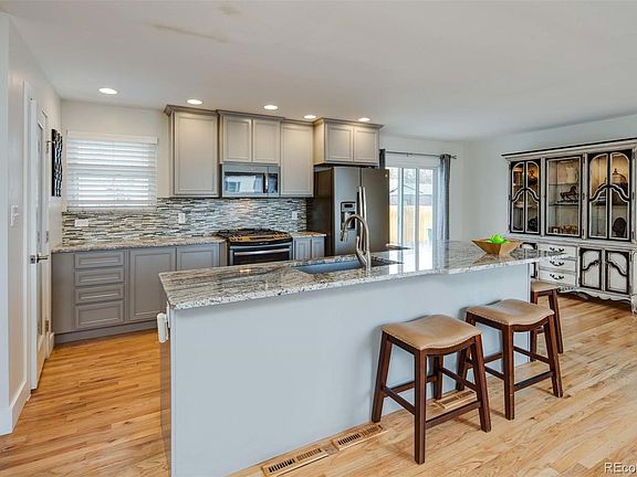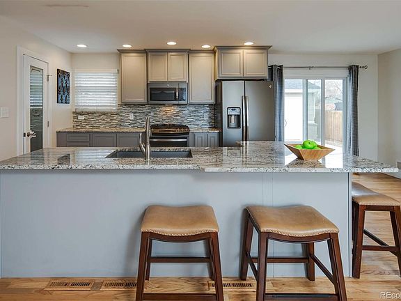 This beautiful move-in ready Northglenn home has been remodeled from top to bottom by the previous owner. The open-concept kitchen (which flows into the spacious dining/living area) boasts new cabinets, designer granite counter-tops, top of the line stainless steel appliances and a walk-in pantry; all PERFECT for entertaining. The custom windows allow for plenty of natural light to shine on the gorgeous hardwood floors throughout the multiple levels of the home. The warm and welcoming upper level features the master bedroom with an updated private bathroom, 2 additional bedrooms and a remodeled full bathroom, all with custom 5 1/2 inch baseboards. The spacious lower level includes a media room or playroom, office nook, built-in wine cabinet, wood burning fireplace with custom shelving, half bathroom, laundry room with full sized washer and dryer and a new water heater. Make sure to check out the large unfinished basement before heading out to the private fenced backyard. The HUGE 800 square foot detached garage has space for 3 cars, or could be turned into a workshop, as the driveway provides ample parking spaces for 3 or more cars. The underground sprinkler systems make maintaining the landscaped front and back yards easy! This gem is nestled in a cozy Northglenn neighborhood close to walking and biking trails, E.B. Rains Jr. Memorial Park, Margaret W. Carpenter Recreation Center, N Line Light Rail Station (Northglenn & 112th) and I-25 for an easy commute to downtown Denver.