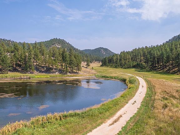 Call Cody Norberg 605-939-4300 for showings. Endless opportunity abounds at the most private property in the Black Hills! 70 acres bordered by miles of Forest Service. Huge private pond attracts all manner of wildlife including elk, deer, and every type of waterfowl. It's the perfect fishing spot teeming with trout, bass, sunfish, crappie, perch, northern pike, and more. There is a thriving orchard with hardy Heirloom fruits and vegetables, specially cultivated to withstand cold temperatures and high elevation. Enter the gorgeous meadow beyond containing campground with 6 RV hookups, make it an ideal spot for hosting visitors or generating unique income opportunity. Tucked away at the end of extremely private meadow lies 3 bed 2 bath home and additional 7th RV Site. All new insulation, metal skirting and 800 sq ft cedar deck. 1890 sq ft Morton Building with concrete floor, power and water. Massive amount of storage and workspace. Three working wells on property. Truly a rare opportunity for secluded yet accessible Black Hills Retreat. Only 7 miles from Custer, perfect location to experience all that the charming town and beautiful Black Hills have to offer.