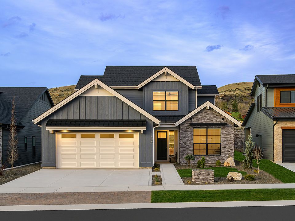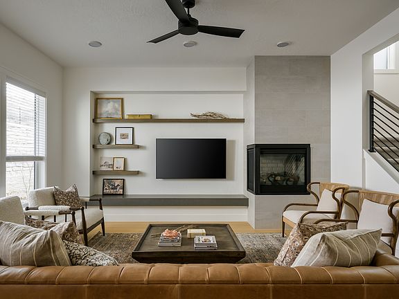 The Blue Ridge offers a well-balanced two-story layout with modern living spaces. The main level features an open kitchen, dining area, and family room with a unique corner fireplace and built-in shelving. The primary suite, located on the main floor, includes an en-suite bath and walk-in closet. Upstairs, a media room and additional bedroom provide ideal spaces for relaxation or entertaining. With ceiling details in key areas and a tandem three-car garage, the Blue Ridge combines functionality with elegance.