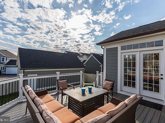Located in highly sought after Garden District of Maple Lawn, this stunning home is sited on an ideal corner lot with spacious fenced yard and offers rare 3 car garage. Upgrades abound in this lovely home, starting with the wide plank hardwoods that stretch throughout the entire main level, the upgraded iron railings leading up the wood staircase and landing, and the dramatic tray ceilings found in the Master Bedroom and Dining Room. Providing a true gourmet kitchen with 42 inch espresso cabinetry, expansive granite island with gorgeous pendant lights, additional granite breakfast bar, subway tile backsplash, butlers pantry, and all stainless steel appliances including a 5 burner gas cooktop. The sunny breakfast room bumpout has wrap around windows and French doors leading to the large composite deck. The spacious family room is anchored by a gas fireplace and open to the gourmet kitchen for comfortable entertaining. All bathrooms have upgraded vanities, countertops and tile flooring. The Master Bath features separate granite vanities, soaking tub, frameless shower and custom tile. 2nd full bath has double quartz vanity and upgraded tile. Laundry is located on the upper level for maximum convenience. The lower level provides a huge rec room, an office, 3rd full bath and storage room. The outdoor area for this home is unique for Maple Lawn with a good-sized grass area, vinyl privacy fencing around entire rear yard, spacious composite deck for outdoor entertaining, and hard to find 3 car garage. This home is positively stunning throughout and provides the exquisite living only Maple Lawn offers!
