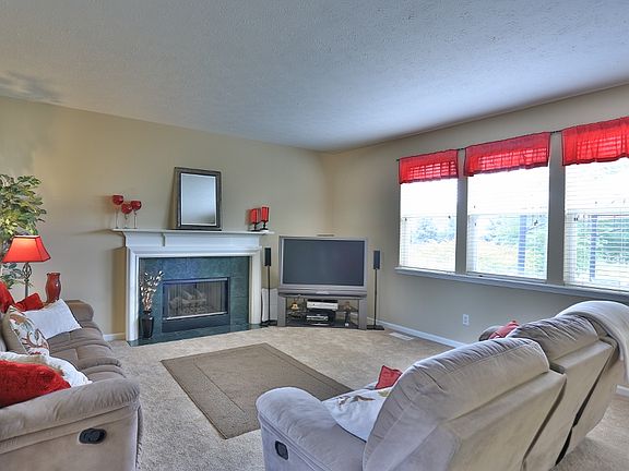 Great home w/lovely curb appeal on oversized private cul-de-sac lot. Open concept layout w/9' ceilings. Finished LL w/add'l space for storage. 4 upper level bedrooms, Kitchen w/lrg center island, 42" white cabinets w/pull out drawers. Huge master bedrm. Master bath w/garden tub, ceramic tile floors & double sinks. Patio & deck w/gazebo. Main flr laundry. Great rm w/fireplace open to kitchen. Close to park, shopping & award winning HSE schools! Recent updates: roof, siding, carpet & more!