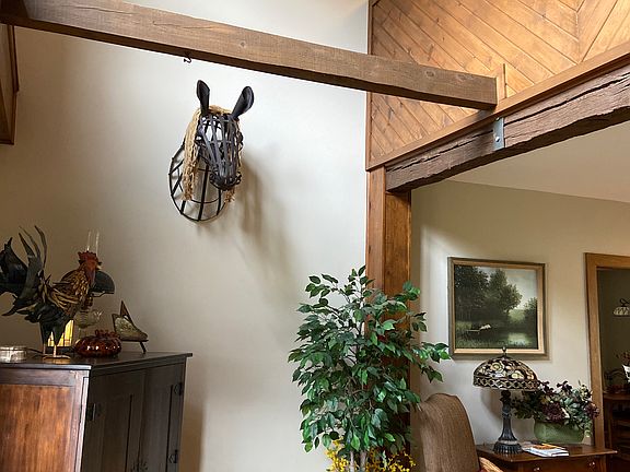 - Exterior features: Stone, Wood
