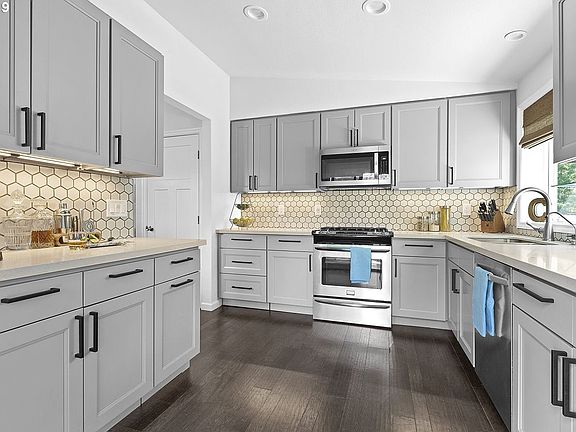GREAT location & newly remodeled! This turn-key split level home can be all yours! Brand NEW kitchen and flooring throughout-including engineered hardwood, 12 x 24 porcelain tile, new carpet w/upgraded Nike pad. New french doors downstairs lead out to a BIG back yard w/deck, patio & garden boxes. Short drive to Washington Square Nike & Apple campuses, short distance to Fanno Creek Park w/10.5 miles of walking/biking trails.