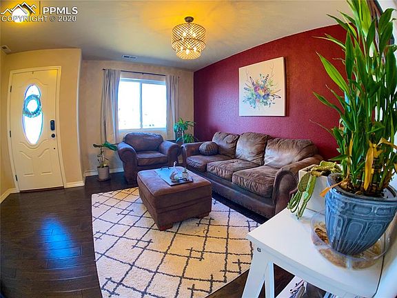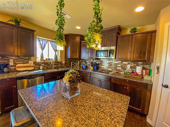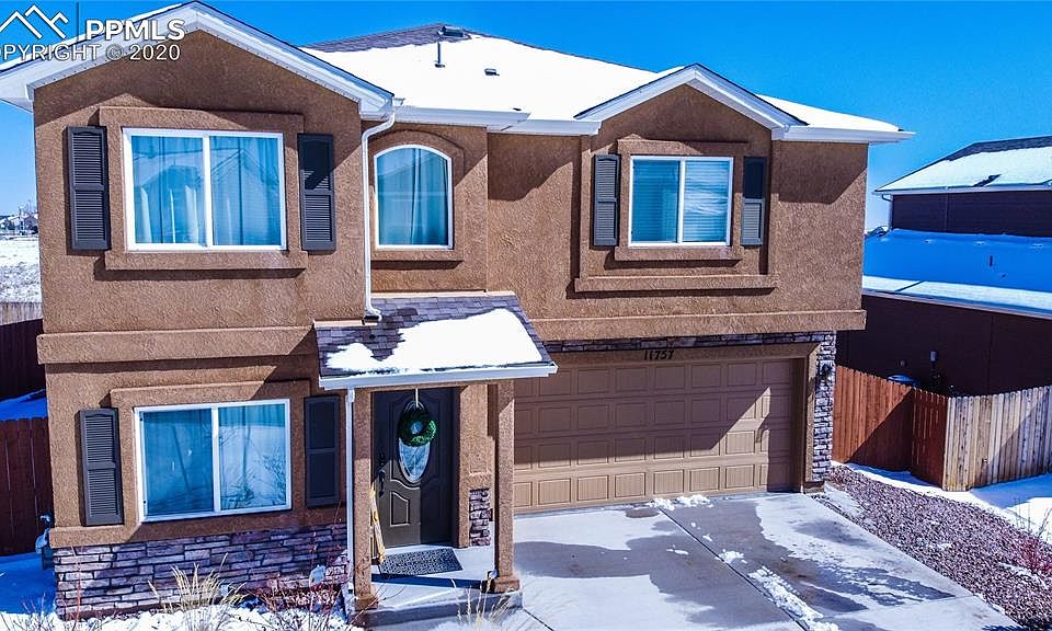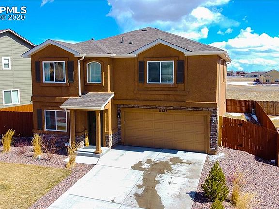 A spacious two story home that is located towards the end of a peaceful cul-de-sac with a gorgeous view facing Pikes Peak and the Rocky Mountains. This is one of the few homes in this neighborhood that has stucco siding, which is more durable and energy efficient than the typical vinyl siding. Most everything in the kitchen has been upgraded, including a well kept double oven. Built in 2016 this house is in great condition.