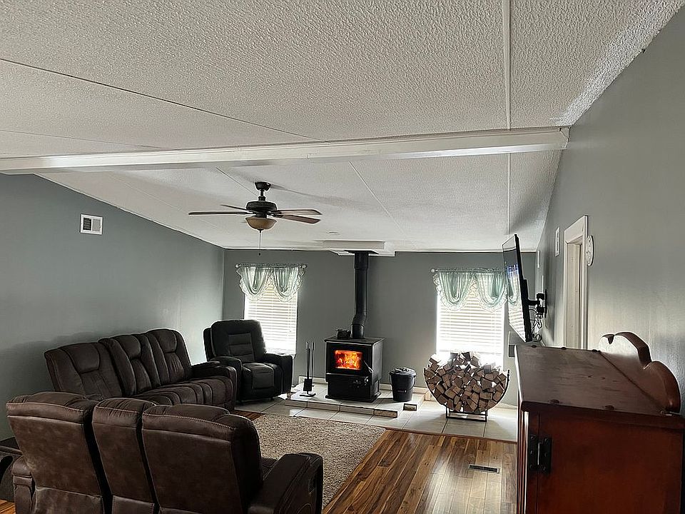 This 1,680 Sq. Ft. home has 3 bedrooms 2 full bathrooms (1 newly remodeled with a heated Jacuzzi tub), 3 car garage, newly remodeled 400 Sq. Ft. game room/office, above ground pool, wood shed, clean filtered well water, and a 1,680 Sq. Ft. dry poured concrete basement (no leaks). It sits on the front side of 10 acres. This beautiful property is partially wooded with creeks running throughout. It answers the hunters dream of late night bonfires or hunting on private property. We hate to sell, but due to career changes we are moving out of state. Call to set up a tour of the home and property anytime.