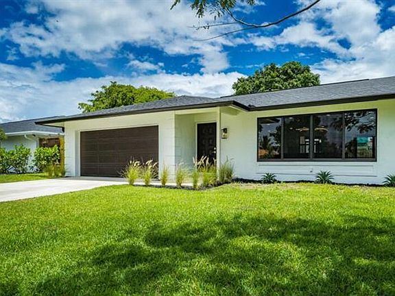 Courtesy ofNorth County Properties. Large pets welcome. Gorgeous fully renovated, unfurnished, 4 Bedroom, 2 Bath, Pool Home w/ 2 Car Garage. Nov 1 move In. Located Garden Woods with no HOA. The renovated kitchen has a huge island that seats up to 7 and opens to the living room & dining room. The kitchen is complete w/soft close wood cabinets, stainless steel appliances & quartz countertops. The whole house has complete impact windows & sliders, 24'' x 48'' large format porcelain tile and recessed lighting. Both bathrooms have been fully renovated and the 2nd bath is also a cabana bath. The screened, covered patio opens to the pool deck and spacious fully fenced back yard. Lawn and pool maintenance included in rent. Information is deemed to be reliab