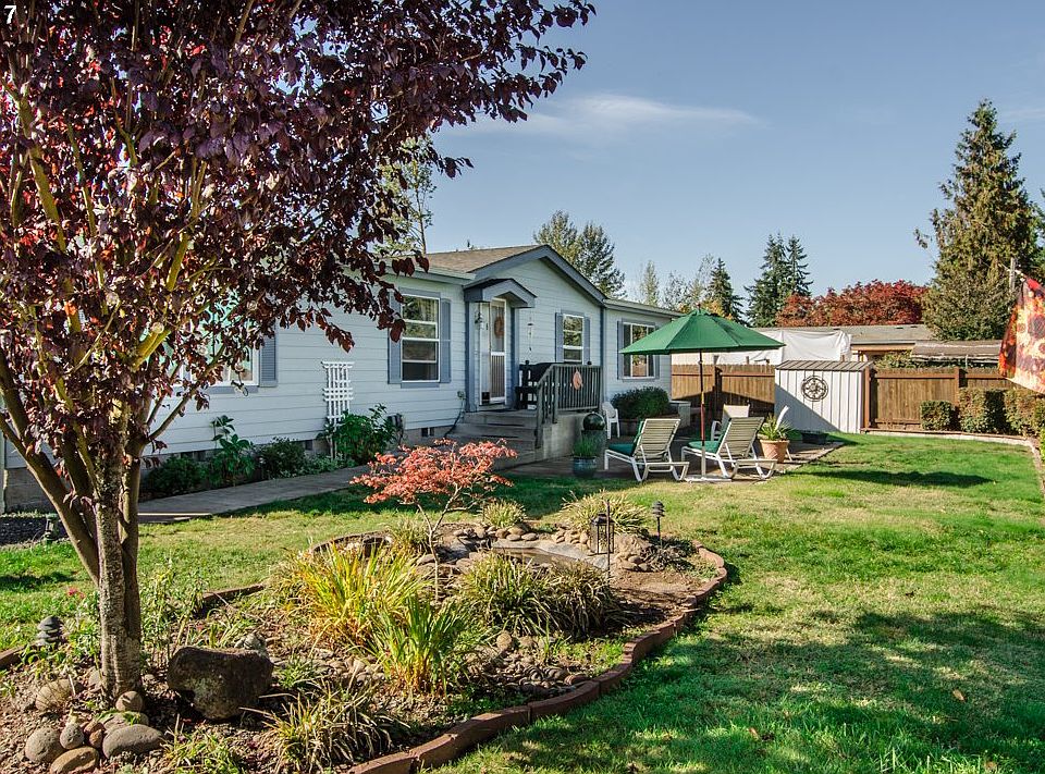 Lovely large 2007 manufactured home on its own land. Fenced .22 acres with landscaping, patio and fountain. Vaulted ceilings, large windows, open kitchen/living room w/island and extensive cabinetry. Great separation of space w/formal dining, large living room and family room. Master bedroom suite w/soaking tub on opposite side of home from other bedrooms. Larger than standard h2o heater. At dead end, very private!