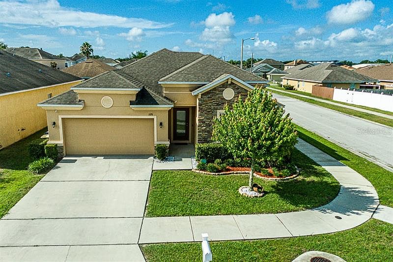 Welcome Home! The Corner lot home is 4 bedroom and 2 bathroom with over 1900 sq. ft. The Terrific Miramar plan has a Contemporary design with exterior stone. Featuring eat in kitchen, 42" cabinets with solid surface tops and ceramic tile flooring in kitchen, stainless steel upgraded appliances. Large great room with an split plan model giving privacy to the Master bedroom at the other end of the home. The master bedroom has a big walk-in closet and the bathroom has a tub with separate shower glass stall and double sinks. Screen Lanai and fenced backyard. The Berkley Ridge community has low HOA and no CDD. Major highways close by and distribution centers. No need to wait for construction, take advantage of the low interest rates right now!! Don't wait a minute longer and schedule your showing today!