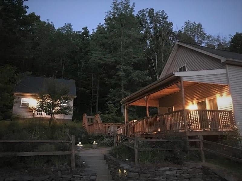 If you're looking for peace and privacy, look no further! This 13+ acres property includes, 3 bedroom 2 bath open concept home with stacked stone fireplace and radiant heat, maple hardwood floors that were harvested from the property, stainless appliances,16x20 guest house. Screened-in porch, wraparound deck. 3 stall horse barn with water, riding arena, 2 story garage with workshop, 2 ponds, one is stocked, other for small pets. Emergency generator system, no maintenance septic, All buildings have their own electric. Too many features to mention! A must-see!